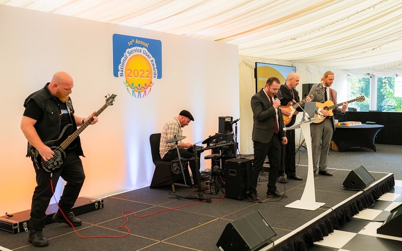 After lunch The Swans, a band of service users and staff from Cygnet Hospital Derby, turned up the volume and got the pavilion rocking to a couple of songs including Black Sabbath’s ‘Paranoid’. This was followed by Amy-Louise, a resident from Nightingale, singing and tapping to ‘Fight Song’ by Rachel Platten. A final impromptu performance came from David, a finalist in the Recovery and Arts category, who sang two songs before the final award of the day.